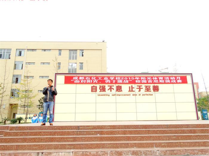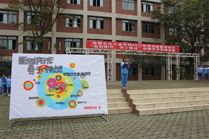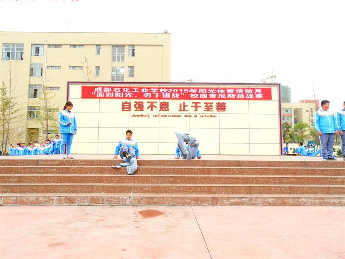 为进一步活跃校园文化,让学生的校园生活多姿多彩,增添乐趣,同时也能展现班级和学生风采,增强班级凝聚力,成都石化工业学校南北校区于11月17日课间操成功举行了本届阳光体育活动月——校园吉尼斯挑战赛启动仪式。