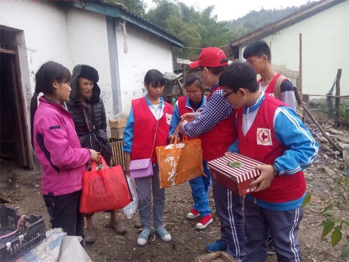 尼西志愿服务中心负责人高泱带领6名学生志愿者一起到家住新兴镇海窝子的曹雪花家走访。曹雪花14岁辍学在家,父母均年岁已高,没有文化,也没有工作能力,家里的经济来源主要靠一些爱心人士的资助。曹雪花虽辍学在家,但并没有放弃对生活的希望,而是在有限的条件下,学会养殖兔子、海地鼠、羊等,换来一些微薄收入维持这个家的正常生活。在高泱叔叔的带领下,志愿者给曹雪花家送去了一些基本的生活用品和一些米面油。