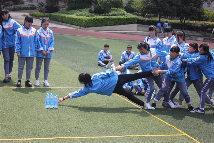 活动分为破冰游戏、隔空取物、接水传递、坐地起身四个环节。活动前,9个方阵分别为自己取了一个有趣的名字,如:“银河战舰”、“东坡肉”、“爆炒鱿鱼”等,整个过程中同学们积极参与、配合默契,在轻松愉快的气氛中完成了本次拓展活动。