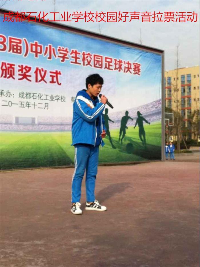 12月17日课间操,在团委文体部的组织下,晋级校园好声音决赛的14名选手面向全校师生进行了一次拉票活动。14名选手分别进行了展示,通过展示让更多的老师和同学们认识他们支持他们。选手们的精彩演唱获得了阵阵掌声。