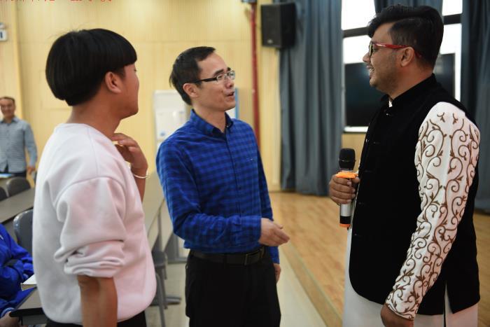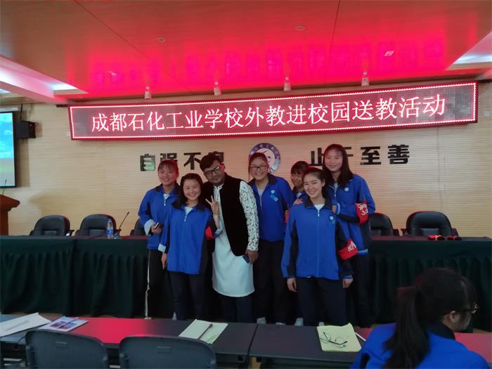 按照学校的安排,在多功能厅举行了简单的欢迎仪式后,热情似火的Bilal老师顾不上休息,就为成都石化工业学校北校区220余名学生上了两堂口语课??翁蒙?,Bilal和同学们一起做游戏,唱英文歌,以图文并茂的PPT,介绍了巴基斯坦的风土人情、宗教、服饰以及中巴友谊,还用流利的英语提出了各种各样的问题,同学们踊跃发言,课堂气氛达到高潮。Bilal老师纯正的英语发音、生动的教学方式、幽默的肢体语言和与众不同的教学风格,充分调动了他们学习的积极性,同学们认真倾听、积极参与,还不时地向外教提问……整个课堂洋溢着欢声笑语。同学们纷纷表示,这样的活动让他们和“老外”有了一次真正的亲密接触,让他们在与外教交流的过程中得到锻炼口语的机会??魏?,同学们争相与外教合影留念,索要签名。