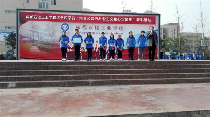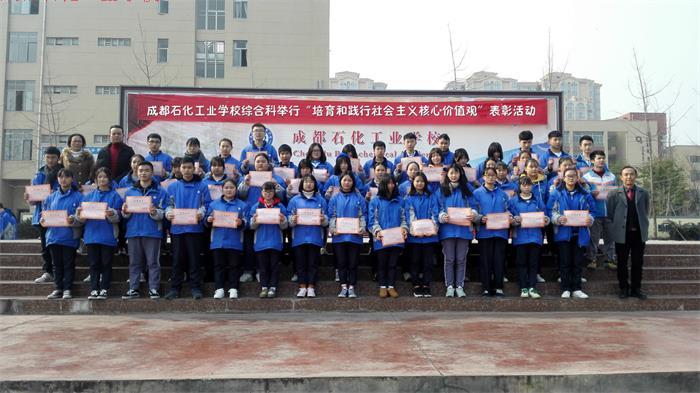 12月21日中午,成都石化工业学校综合科在南校区运动场隆重举行“培育和践行社会主义核心价值观”表彰活动。