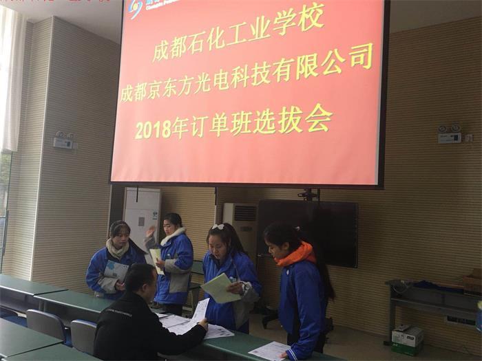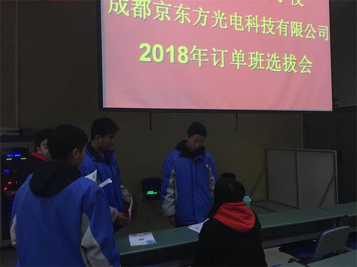 活动后,七十余名同学参加了笔试和面试,通过考试的同学将组成本届“京东方”订单培养班,在接下来的几个月内,成都京东方公司和我校将对该班同学进行有针对性的岗前培训,考核合格的同学方能进入成都京东方公司顶岗实习。