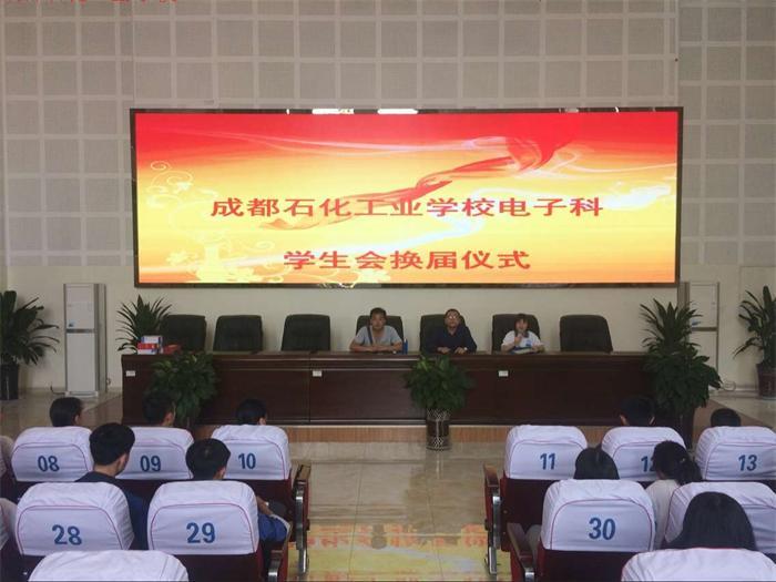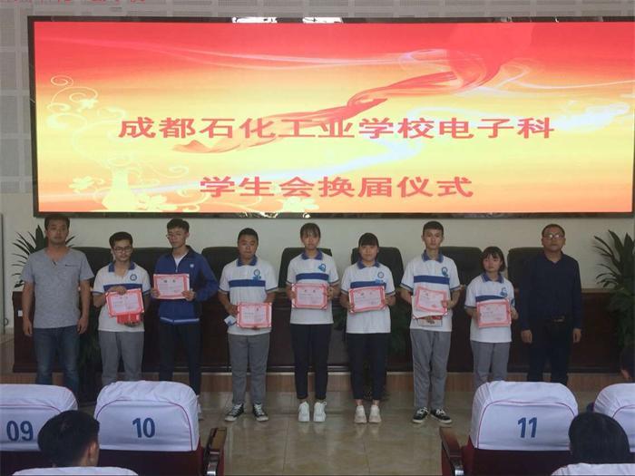 通过全体学生干部选举、推荐,经公示无异议,成都石化工业学校电子科新一届学生干部成功产生,9月19日,换届仪式在109会议室举行。