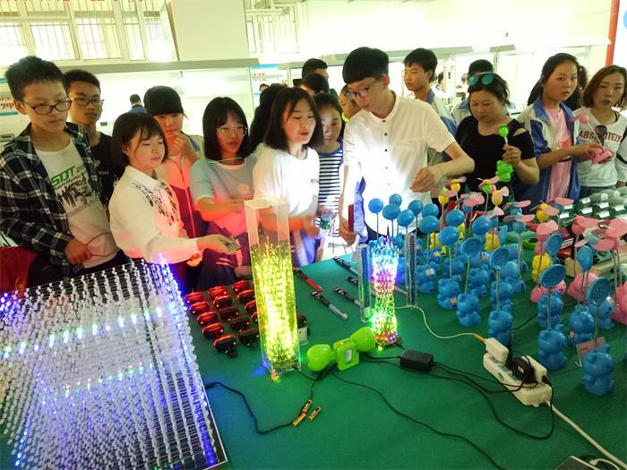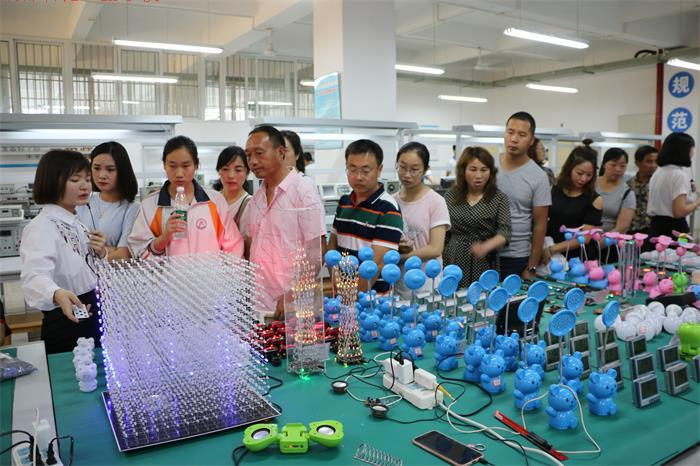 体验活动中,来自各初级中学三千余名初三学生、家长、教师、领导参观了学校电子技术应用专业实训中心,现场观摩了电子专业一年级学生实训课程;观看了学生现场小夜灯制作、“光立方”模型拼装;体验了“单片机控制装置安装与调试”、“多功能电子??橛τ谩?、“光机电一体化设备安装与调试”、“楼宇智能化设备安装与调试”、“电子产品组装”等电子专业技能;参与了WIFI小车、机器人、无人机等智能作品互动体验;欣赏了学生优秀实训作品。