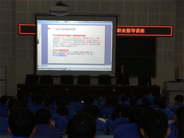 12月7日上午,成都石化工业学校电子科组织高二就业班186名学生在109阶梯教室参加了职业指导培训。
