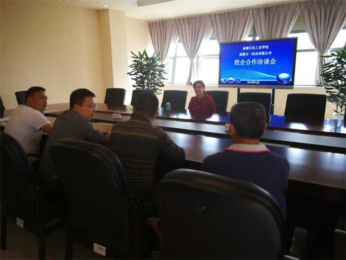 4月17日上午,成都文一责任有限公司总经理阳婷燕一行来到我校,就机械专业产教融合,校企合作进行商讨?;嵋樵谘=萄トセ嵋槭艺倏?。座谈会由党委委员、副校长周川益主持,机械科科长陈小弟,实训基地主管赵建国,总务主任张孝剑出席。