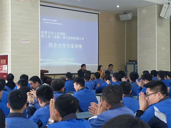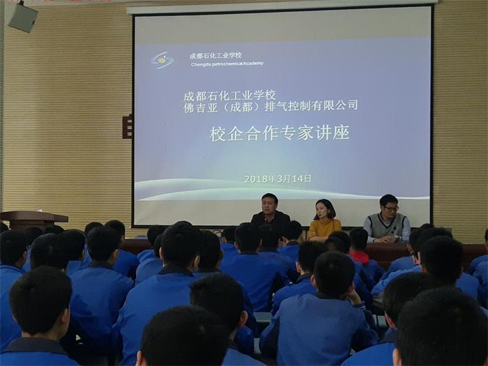 3月15日下午,佛吉亚(成都)排气控制有限公司一行来成都石化工业学校南校区与机械科举办校企合作专家讲座。佛吉亚人事经理刘经理、专业讲师张老师与该专业科科长、德育副科长、专业科干事及机械科2016级全体学生参与活动。