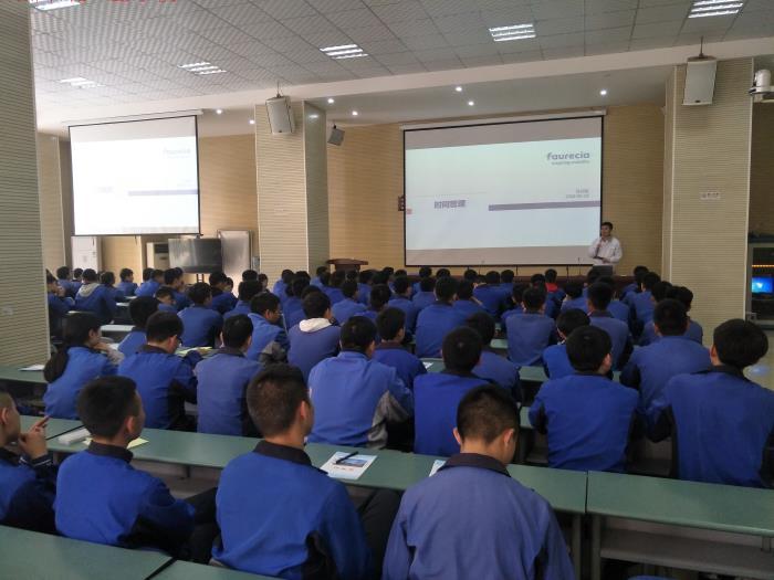 专业科科长致辞表达对佛吉亚(成都)排气控制有限公司来宾的欢迎之意后,刘经理对佛吉亚公司进行了介绍,最后张老师做了时间管理的专家讲座。