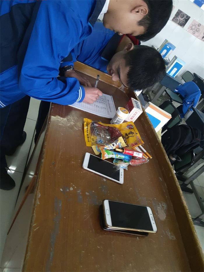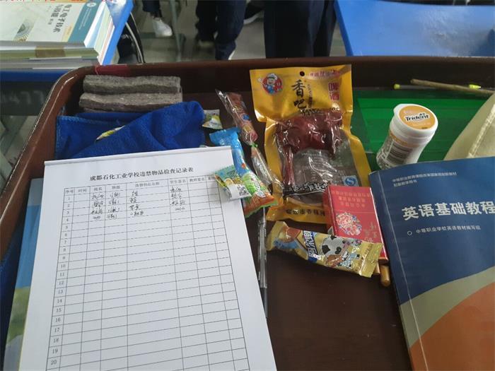 3月5日,成都石化工业学校机械科科长、德育副科长以及德育干事对科内学生进行了违禁物品大检查。
