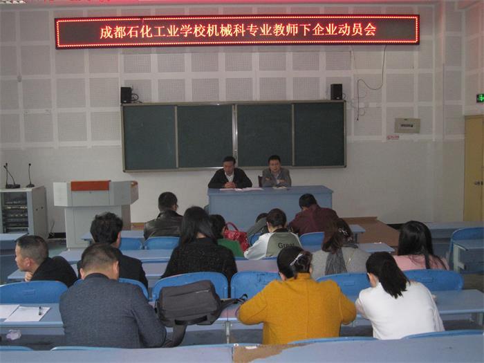 ? ?4月10日上午,成都石化工业学校机械科在南校区107会议室召开了专业教师下企业动员会。