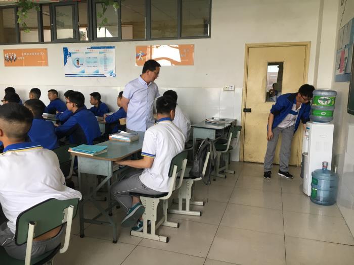 ? ?为规范学生的学习行为习惯和提高班级内务管理水平,进一步加强各班级的后期管理水平,迎接职教体验月和提升高二汽修专业学生就业规范素养的培养,5月16日早训课,成都石化工业学校汽服科德育副科长和干事在徐志友科长的带领下,对科内各班级进行了检查。