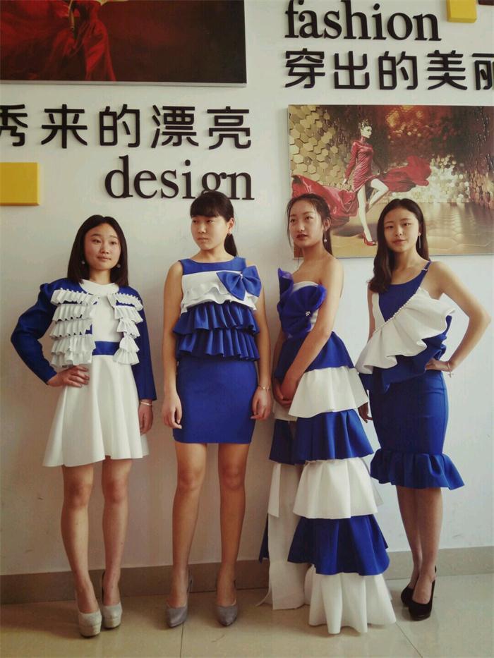 在三位专业教师用心指导下,学生的缝制工艺得到很大的提高。学生通过设计并绘制的服装款式图,进行了系列服装的结构制图、面料排版、工艺缝制,制作出自己中意的系列服装,并进行了小型“时装秀”。