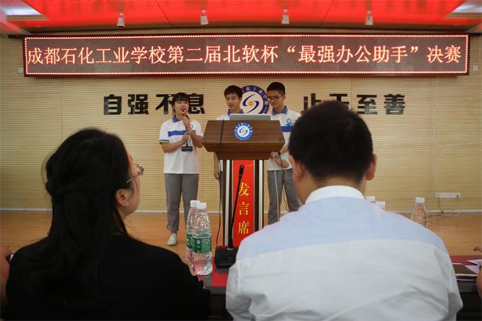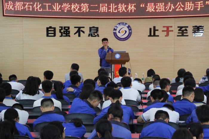 5月3日上午10:30-12:30,成都石化工业学校学前信息科计算机专业第二届北软杯“最强办公助手”决赛在北校区多功能厅举行。16、17级计算机专业的全体同学观摩了决赛的全过程。