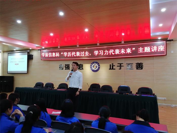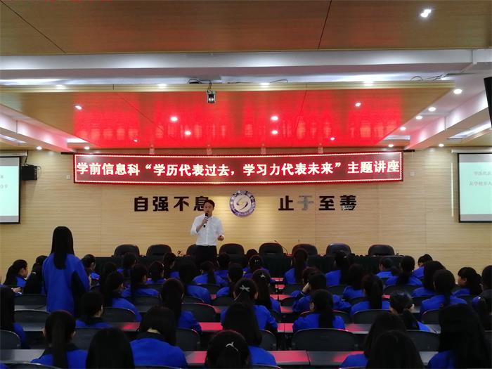 为进一步提升学生学习动力,促进学生职业生涯规划,4月27日,成都石化工业学校学前信息科在多功能厅举行了“学历代表过去,学习力代表未来”主题讲座。