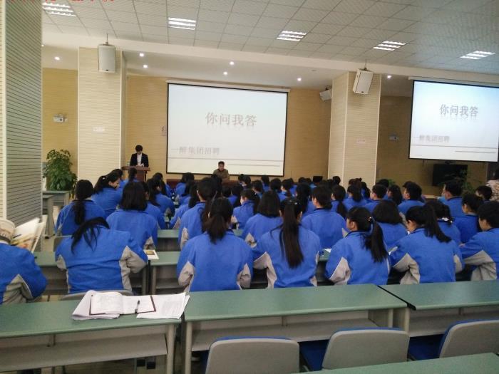 “一醉”集团皇冠会展酒店王彩虹总经理担任主讲。她首先就“一醉”集团的具体情况和岗位设置向同学们作了详细的介绍;接着,她以视频的形式给同学们播放了前几届学姐们在企业中优秀表现;最后,她激励同学们做好应聘实习的准备,做一个有坚持的人。
