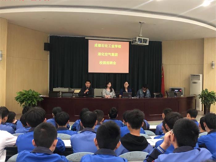 4月11日,我校2018年人才储备活动再迎重量级企业--世界500强、化工巨头、工业气体领导者——法国液化空气(AIR LIQUIDE)(成都)有限公司,首次来校举行校园招聘会。分管副校长刘遵勇出席了招聘会,化工专业学生以较高的综合素质赢得了企业的肯定,本次招聘共录用2016级实习就业学生 5名,超出公司预期,这也是该公司首次在中职学校选拔专业技术人才。