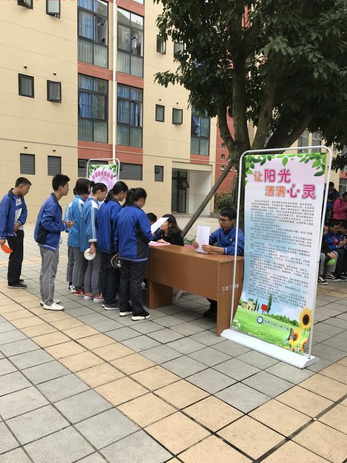 活动现场设有咨询台,心理辅导老师通过向全校学生宣传精神卫生相关知识、开展心理健康测试等形式,让更多同学懂得关爱自己,并由此发展到关爱他人,关爱社会,传递社会的正能量。