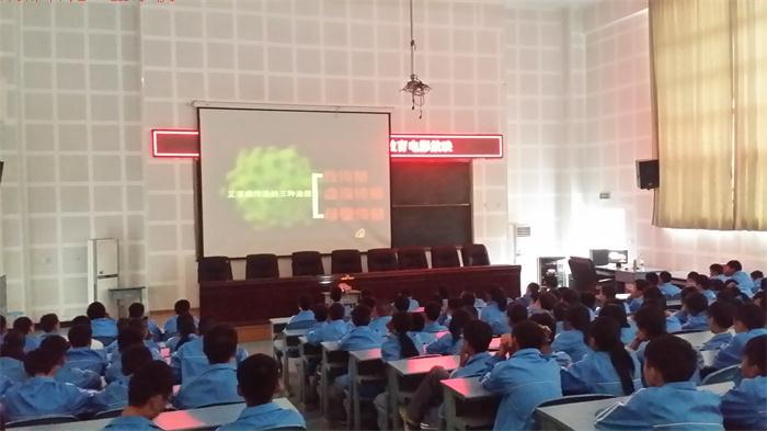 会议中,卫生局工作人员给学生播放了介绍艾滋病、预防艾滋病教育视频,从科学的角度引导、教育学生面对青春期男女生生理和心理变化,引导自强、自爱、自尊、自律,树立起正确的价值观、人生观,培养良好的心理素质,更好地学习和生活,以健康的心态迎接生活、迎接未来!