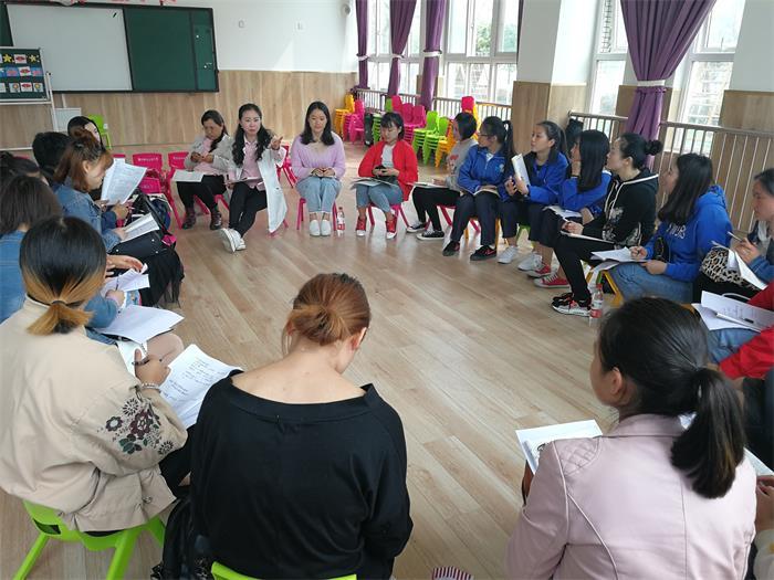 首先,老师们观摩了幼儿园的早操活动。在活泼的音乐声中,幼儿们在老师的带领下愉快地完成了韵律活动、徒手操、体能训练、器械操、游戏放松活动等。在观摩了由军乐幼儿园郑亭老师执教的中班音乐活动《摇篮》后,老师们分为两组,以“图谱在歌唱教学中的运用”以及“如何降低音乐活动教学的难度”为主题,对本次活动进行讨论。最后,由音乐联组组长杨胜兰老师对音乐活动做点评、指导,成都石化工业学校郑淼名师工作室领衔人郑淼老师发表了观摩感悟。