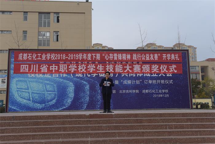 2019年2月21日上午9:00,成都石化工业学校全体师生精神抖擞地汇聚在学校操场。伴随着运动员进行曲,我校2018-2019学年度下期开学典礼正式拉开帷幕。