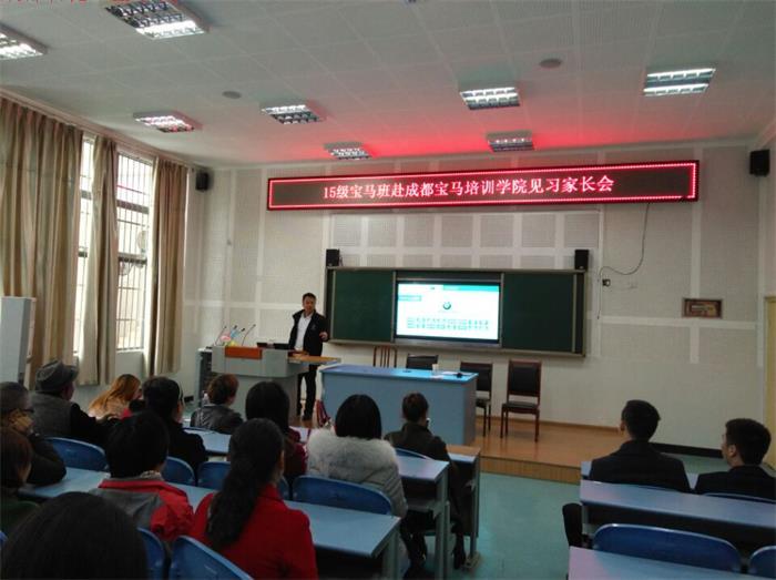? ?3月24日上午10点,成都石化工业学校召开了2015级宝马班赴成都宝马培训学院见习家长会。