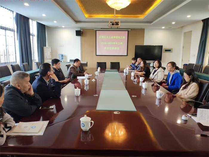 10月24日中午,成都石化工业学校化工科在北校区第二会议室召开了18-19学年上期班主任联席会。该科办公室全体老师及该科班主任参加了会议。