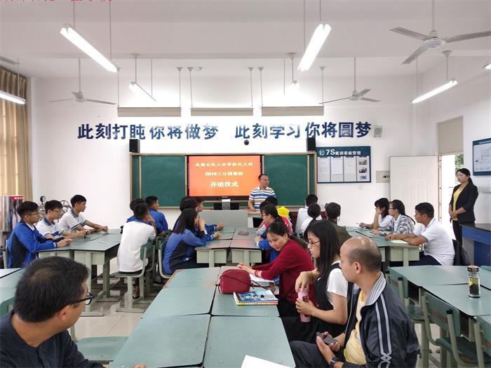 9月18日上午,2019工分国赛班开班仪式在成都石化工业学校北校区实训楼204举行。学校党委委员、副校长罗光宇,教务处副主任、化工科科长强叶东及工分国赛指导老师参加了开班仪式。开班仪式由该科教学副科长蔡统琴主持。