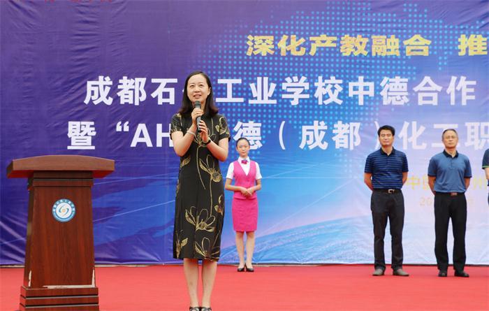 6月15日,以“深化产教融合推进国际合作”为主题的中德合作“AHK”项目签约仪式暨“AHK中德(成都)化工职业培训中心”成立大会在成都石化工业学校成功举行。德国工商大会上海代表处职业教育副总监陈丽玮出席签约仪式。