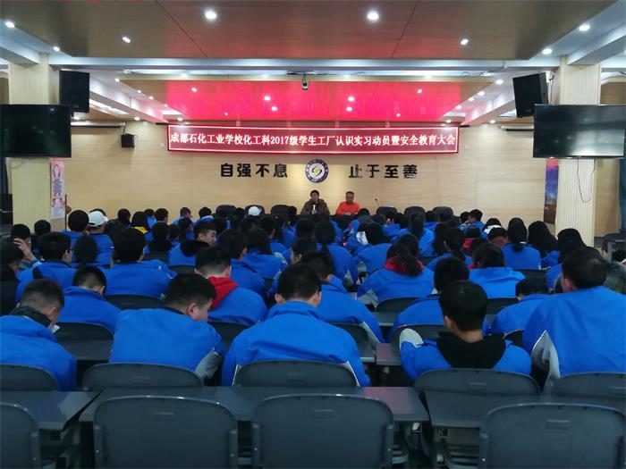在组织学生参观石化基地之前,为了让同学们熟悉化工厂安全生产,安全完成工厂参观,成都石化工业学校化工科于本周二上午在多功能厅举行了工厂认识实习及教育大会。化工科教学副科长、德育副科长及一年级全体同学参加了会议。