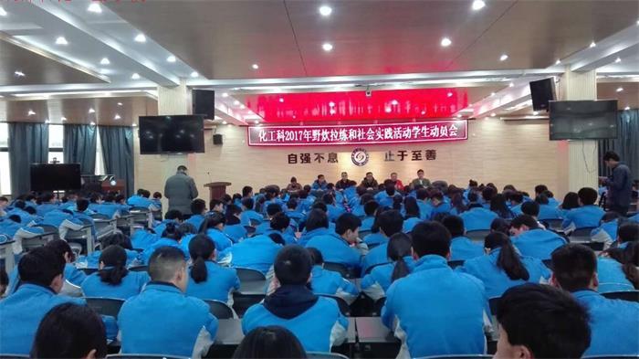 ? ?本周二下午,成都石化工业学校化工科在北校区多功能厅召开了一年级学生野炊拉练和二年级学生社会实践活动动员会。校党总支副书记、工会主席段洪云,学校行政办主任、化工科科长罗光宇,化工科德育副科长陈诚及教学副科长强叶东出席了会议,化工科一、二年级全体同学及班主任参加了本次动员会。