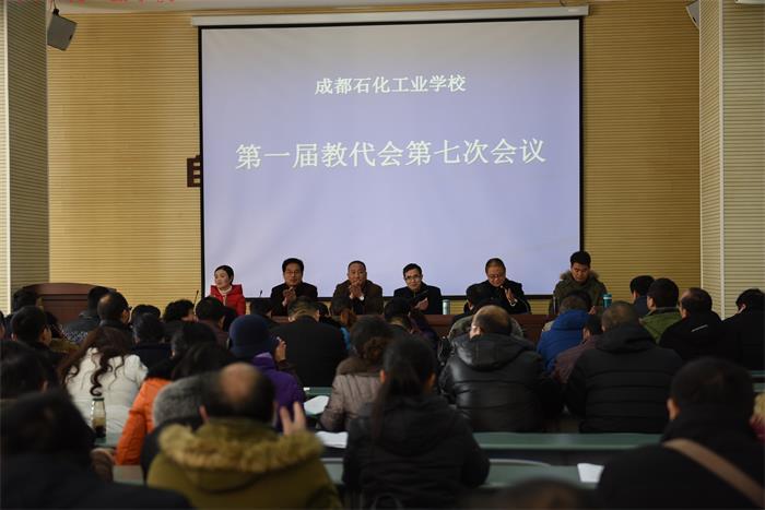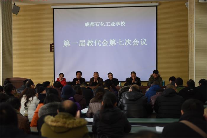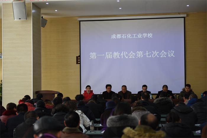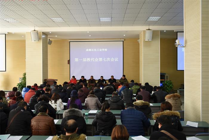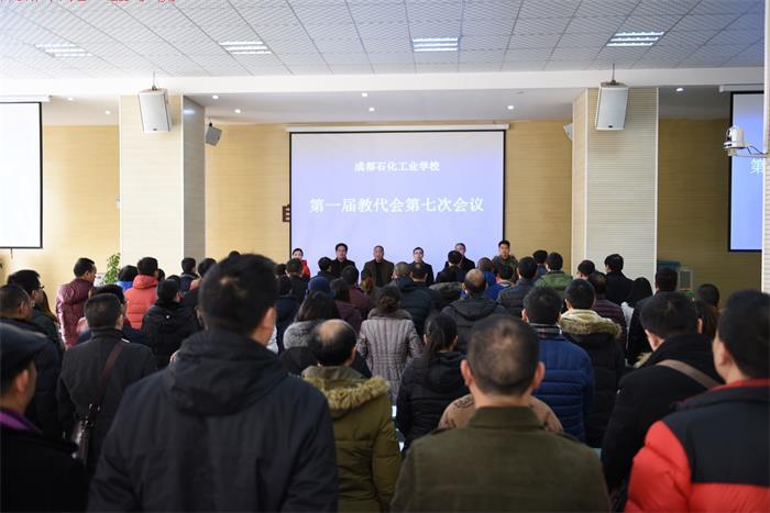 ? ?2017年1月12日上午,成都石化工业学校第一届教职工代表大会第七次会议在南校区多功能厅顺利召开。与会人员为教代会全体成员及列席代表。会议由学校党总支副书记、工会主席段洪云主持。大会在庄严的国歌声中拉开序幕,接着由党总支副书记、工会主席段洪云宣布议程,会议正式开始。