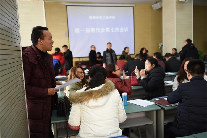本次会议共8项议程。首先是党总支书记、校长刘应建作《成都石化工业学校2016年工作报告》;然后,副校长魏刚华对学校相关方案及其他重大问题和教职工关心的热点问题进行说明;接着,大家听取了党总支副书记、工会主席段共云宣读的学校相关部门对各工会小组教代会提案的回复;接下来又开展了对行政干部的民主评议活动。