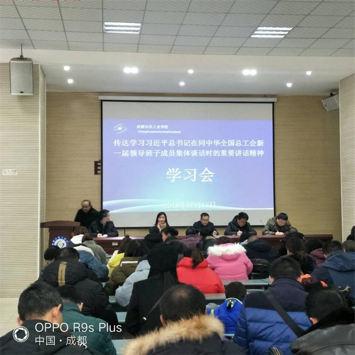 日前,成都石化工业学校党委组织全体教职工学习习近平同中华全国总工会新一届领导班子成员集体谈话时的重要讲话精神。