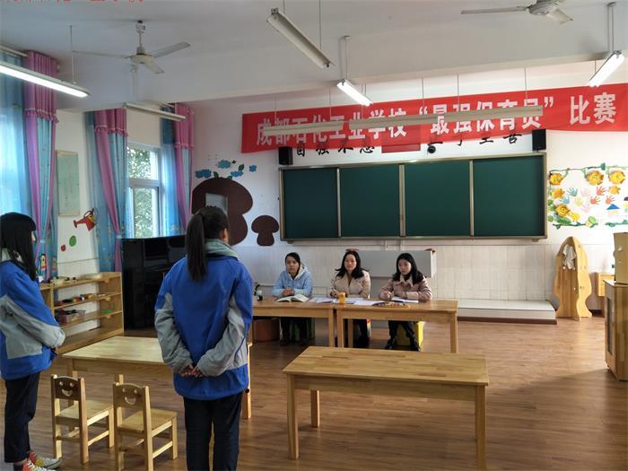 12月19日上午,成都石化工业学校学前信息科在活动设计实训室举行了“最强保育员”技能比赛,16级学前教育专业各班进行了初赛,每班选出了12名学生组成四个参赛队参加了比赛。