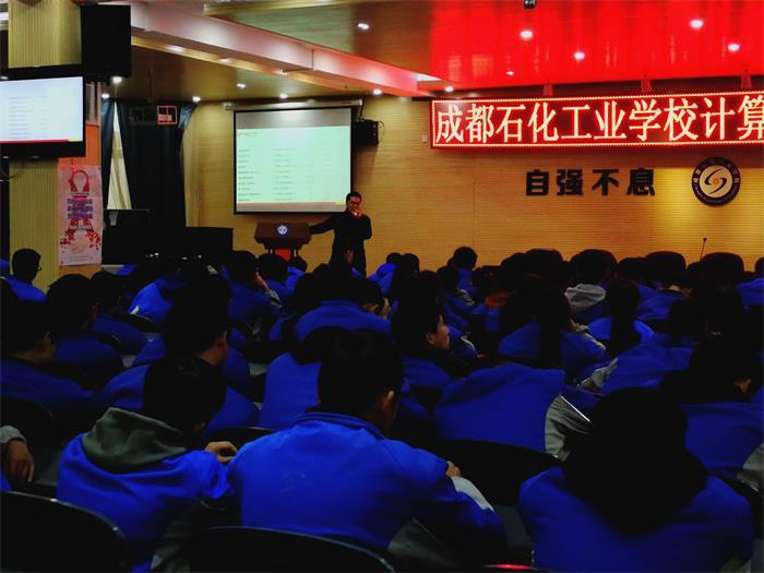 12月7日,成都石化工业学校学前信息科邀请优越国际教育集团品牌总监、优越人才网CEO李庆峰先生到校为2017级计算机专业的同学带来一场专业讲座。