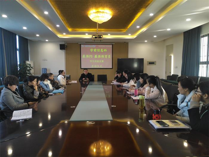11月28日上午,成都石化工业学校学前信息科在北校区第二会议室召开了“最强PS 最强保育员”学生技能竞赛启动仪式。参加会议的有该科科长杨志强,副科长郑淼,2016级计算机专业、学前教育专业各班班主任及本次竞赛的评委。