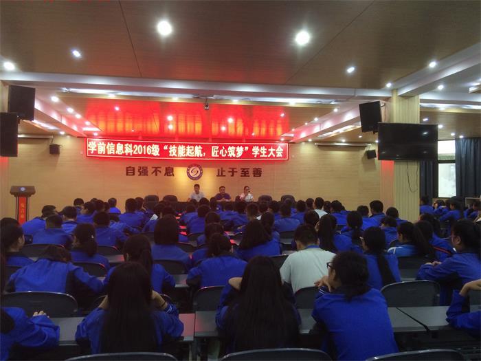 9月14日下午第三节课,成都石化工业学校在北校区多功能厅召开2016级“技能起航,匠心筑梦”学生大会,学前信息科科长杨志强、教学副科长郑淼、德育副科长钟大林出席本次会议。