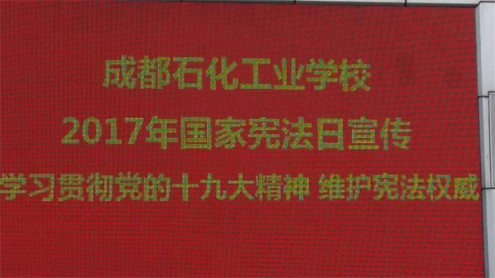 为深入扎实开展“七·五”普法教育活动, 认真贯彻落实上级文件精神,以“学习贯彻十九大精神,维护宪法权威”为主题,大力弘扬法治精神,全面提高全体师生的法律知识,营造文明、和谐、平安的校园法治环境,近日,成都石化工业学校在12月掀起了法制宣传月教育活动的热潮。