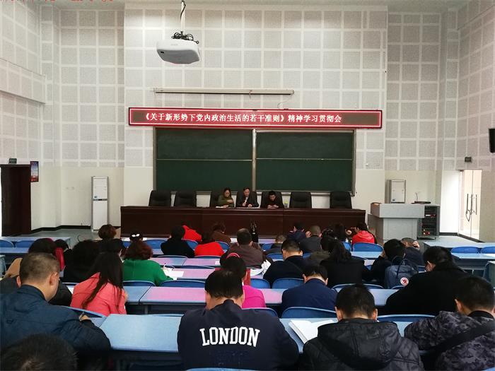 为巩固党的团结和集中统一、保持党的先进性和纯洁性、增强党的生机活力积累丰富经验,11月6日,我校党总支第三支部分别在109、107会议室召开了“关于新形势下党内政治生活的若干准则”精神学习贯彻会。