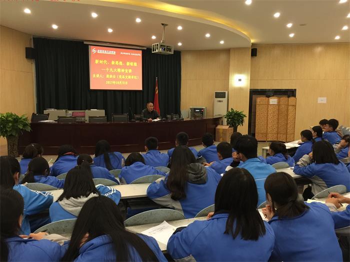 正值党的十九大胜利闭幕,新一届党中央领导集体产生之际,为提高学生的政治思想观念,强化学生的世界观、人生观、价值观,增强党性修养,进一步发挥青年学生的先锋模范作用,10月31日中午,成都石化工业学校业余党校第十一期开班典礼暨第一次党课培训在第一会议室举行。