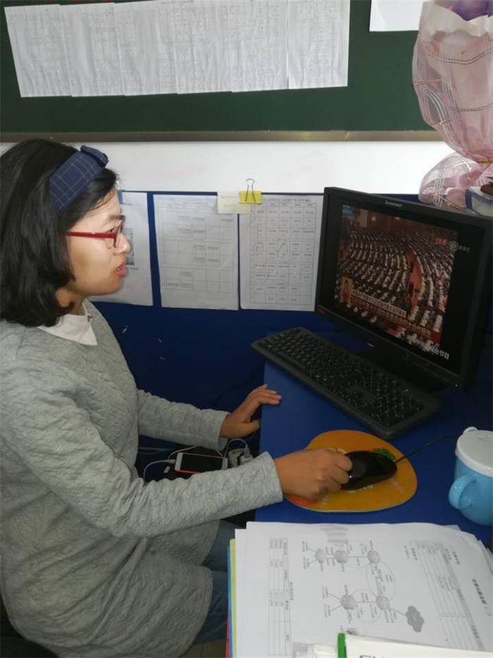 习总书记在报告中提到:优先发展教育事业,完善职业教育和培训体系,深化产教融合、校企合作。加强师德师风建设,培养高素质教师队伍,倡导全社会尊师重教等观点,是对我们全体教师提出的新要求,为我们增添了新的动力——党员蒋爱萍说。
