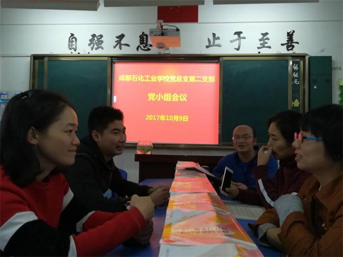 即将召开的党的十九大,是在全面建成小康社会决胜阶段、中国特色社会主义发展关键时期召开的一次十分重要的大会,承担着谋划决胜全面建成小康社会、深入推进社会主义现代化建设的重大任务,事关党和国家事业继往开来,事关中国特色社会主义前途命运,事关最广大人民根本利益。大会将于10月18日召开的消息,让成都石化工业学校党总支第二支部全体党员欢欣鼓舞、充满期盼,激发起以实际行动争创佳绩迎接十九大胜利召开的豪情和动力。