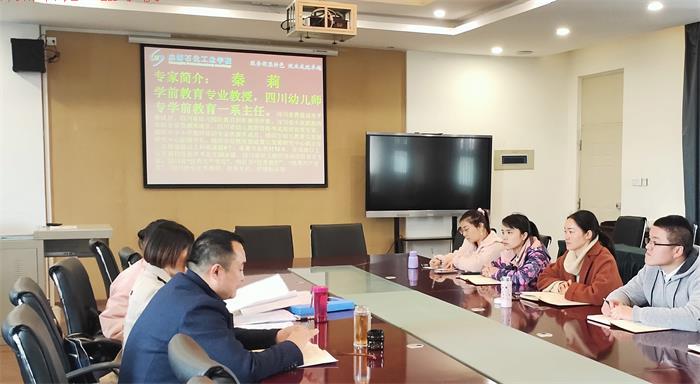参加本次专题研讨会的有学前信息科科长杨志强以及郑淼名师工作室成员。会议邀请了四川幼儿师范高等专科学校学前教育一系主任秦莉教授做课题研究指导。