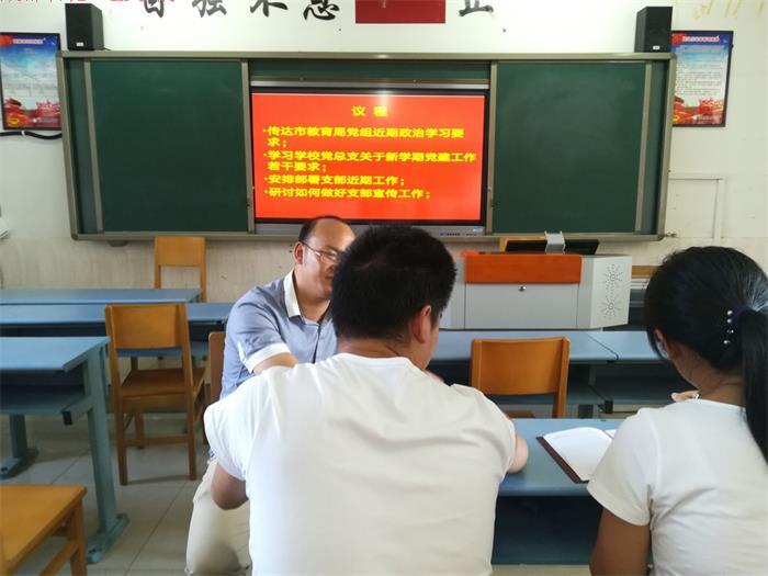 会上,支部书记蒙小建传达了市教育局党组近期政治学习要求,组织学习了学校党总支关于新学期党建工作的若干要求,并对支部近期的工作做安排部署,研讨如何做好支部的宣传工作,特别强调了支部委员肩负的职责与使命,希望在新学期的工作中,将各项工作落到实处,发挥党员的先锋模范带头作用。