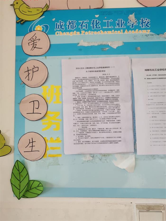 一是加强防治宣传教育。学校通过板报、宣传栏等多种形式,开展防治春季传染病的健康教育,向师生普及春季多发传染病的有关知识,如传染病类型、症状、传播途径、治疗方法等,尤其是对流感、水痘、肺结核的流行特点及预防措施进行全面、详细的介绍,提醒师生注意讲卫生,开窗通风,多喝水,多锻炼,增强免疫力;普及春季传染病特点及防控小常识。通过宣传教育,让广大师生掌握春季传染病的防控基本知识,懂得流感、水痘、肺结核等传染疾病可防、可控、可治,消除恐慌心理,大力倡导师生养成良好的个人卫生习惯。