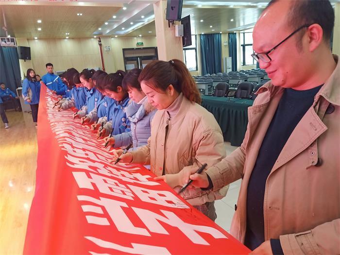 学校领导、党员志愿者、教师志愿者和学生代表100多人齐聚多功能厅。2017级学前教育1班全体同学带来的表演唱《学习雷锋好榜样》,让全场心潮澎湃,有一种时刻准备着践行雷锋精神的劲儿。2017级计算机2班陈妍雯同学代表团委学生会向全校发出《我在彭州学雷锋》的倡议并集体宣誓:传承雷锋精神,践行志愿服务。随后师生代表纷纷在横幅上签名,履行自己许下的诺言。学校领导在随后的讲话中首先与大家分享了雷锋精神的内涵:雷锋!是一个符号,是全人类精神文明的符号!雷锋精神就是“钉子”精神、“永不生锈的螺丝钉”;就是艰苦奋斗精神,然后强调在成都市全面实施国家战略、建设美丽宜居公园城市新的发展阶段,在彭州市打造两山理念示范区、成德同城先行区,加快建设立体山水画卷的公园城市的关键时候,我校师生要大力弘扬雷锋精神,扎实开展志愿服务,积极参与到“学雷锋”活动中来,争做雷锋式的“ 螺丝钉”,争当无私奉献的志愿者,做一个有远大理想的人、有高尚道德的人、有益于人民的人。