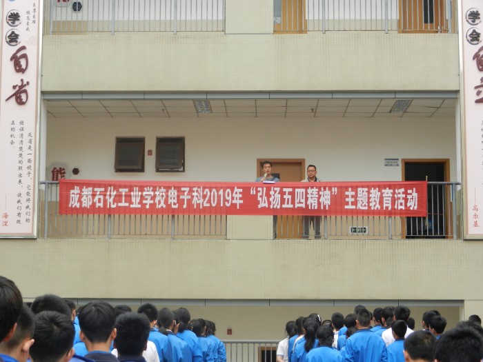 4月30日上午,成都石化工业学校电子科组织全科学生开展了“弘扬五四精神”主题教育活动。