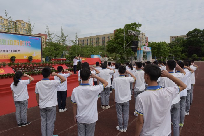 活动在重现五四运动的音乐剧中拉开帷幕,学校团委负责人带领全校青年重温了习近平总书记在纪念五四运动100周年大会上对青年的“六点寄语”,学校党员教师为新入团青年佩戴团徽,全体新团员面向团旗庄严宣誓,通过重温入团宣誓仪式,全体同学经历了一次心灵的洗礼,一次严肃而庄重的爱国主义教育,增强了青年团员的使命感和责任感。