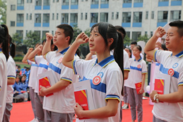 学校领导向参加活动的学生代表发放了成人纪念册和《宪法》并为他们佩戴成人纪念徽章。“我是中华人民共和国公民,我将遵守宪法和法律,拥护中国共产党的领导……”全体参加成人仪式的同学面向国旗庄严宣誓,这誓言振聋发聩,诠释着成人后的责任和使命。仪式最高潮,全体学生高举小红旗,合唱“我和我的祖国”,用最动听的歌声表达深挚的爱国之情。接着,参加成人仪式的家长和同学一起手牵气球,在签名墙前留下自己的祝福和愿望并放飞气球,放飞自己的梦想。